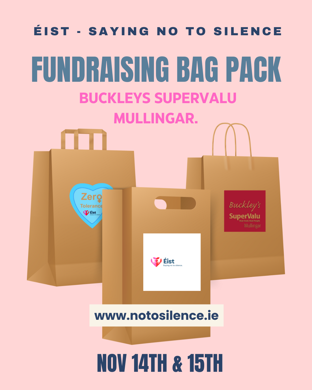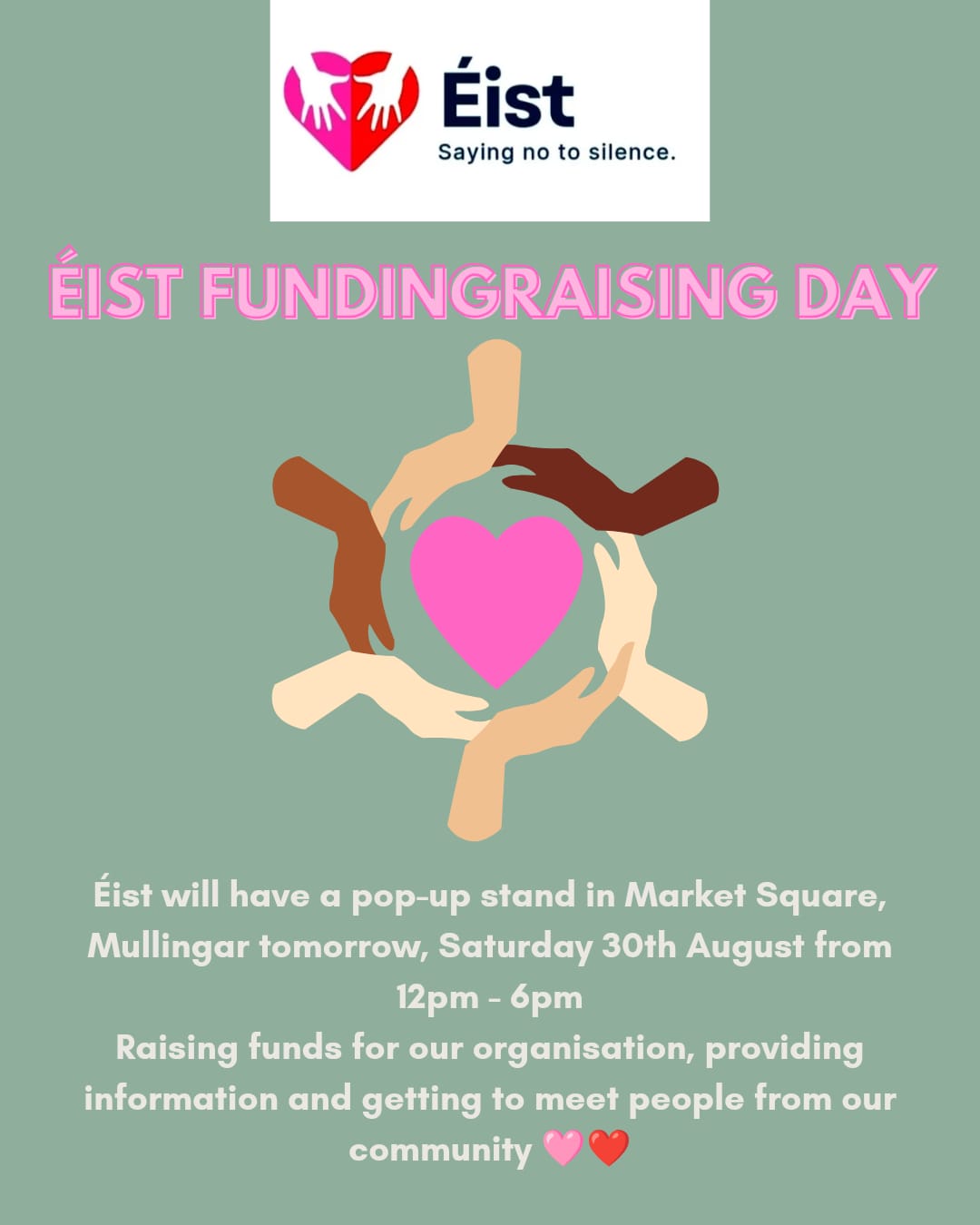 Éist - Saying No To Silence is holding a pop-up information and fundraising day on Saturday 30/08/2025 from 12:00pm - 6:00pm, Market Square, Mullingar, Co. Westmeath.