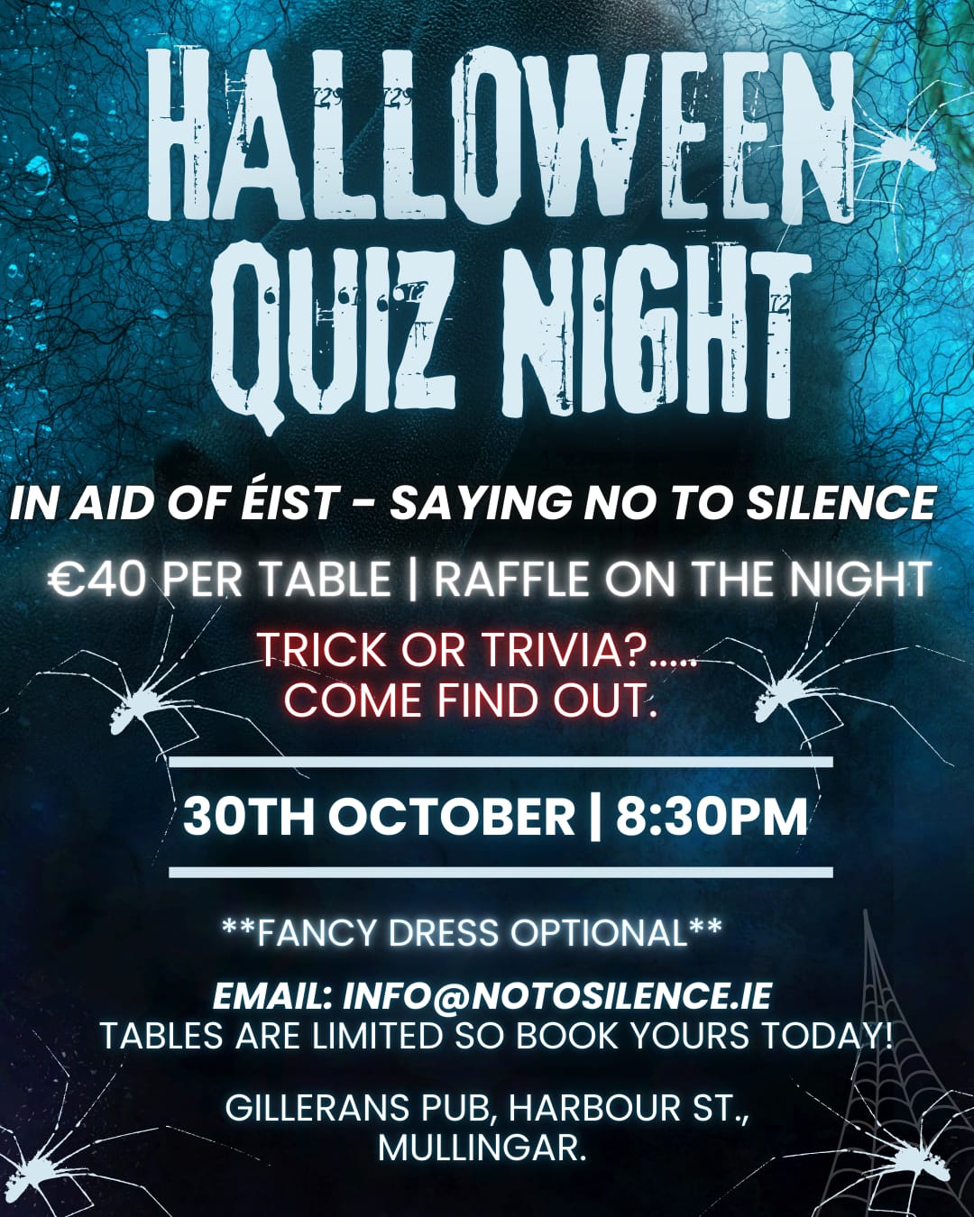 Come join us for a spooktacular evening of brain-teasing fun at Gilleran's Bar, Mullingar- raising funds for Éist.