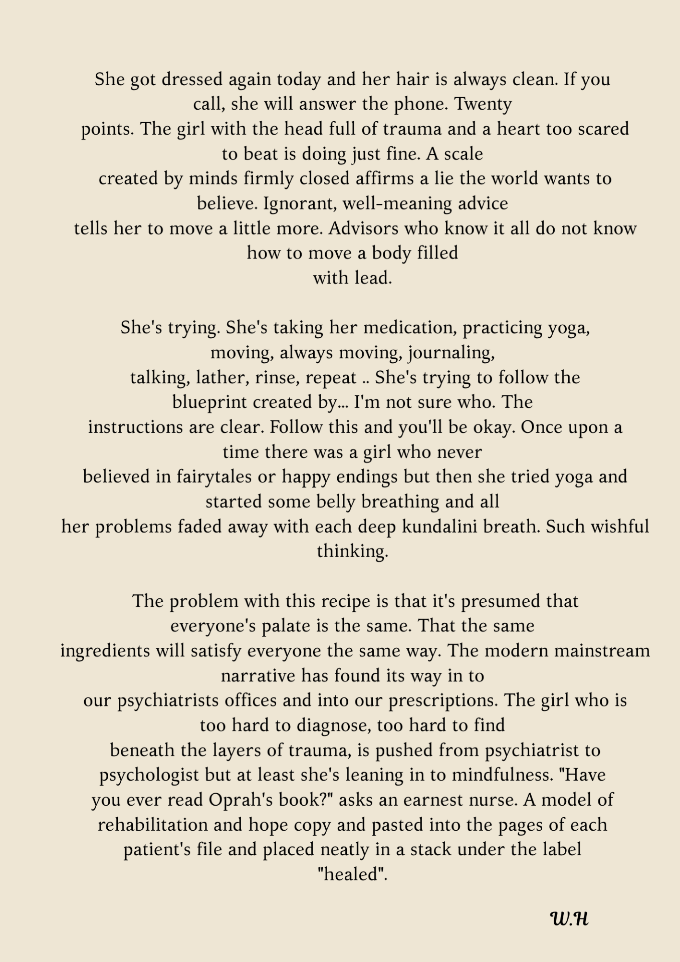 you ever read Oprah's book?" asks an earnest nurse. A model of