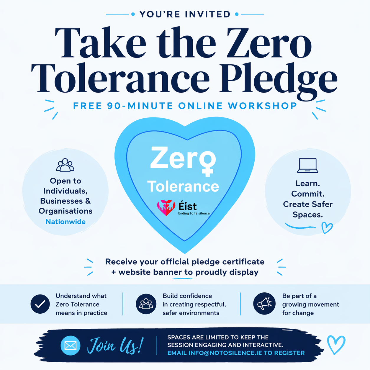 The Zero Tolerance Pledge Workshop by Éist – Saying No to Silence is a powerful, accessible starting point for individuals, businesses, organisations, and communities who want to take a clear and public stand against domestic, sexual and gender-based violence.
